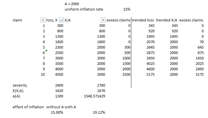 My calculations showed that the claim size inflation in the excess layer (i.e. inflation of excess severity based on example 5.10) is actually larger than the uniform inflation rate. Do you mind pointing out to me which part that I am missing??