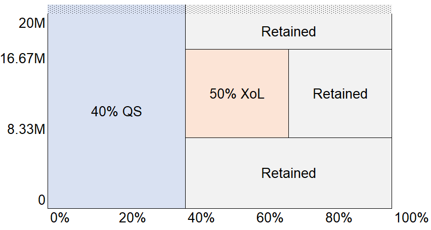 Edit - I edited the picture. Originally I had made a small mistake on the top of the reinsurance diagram by stopping the QS at 20M. It's now fixed below, showing the QS doesn't have a limit.